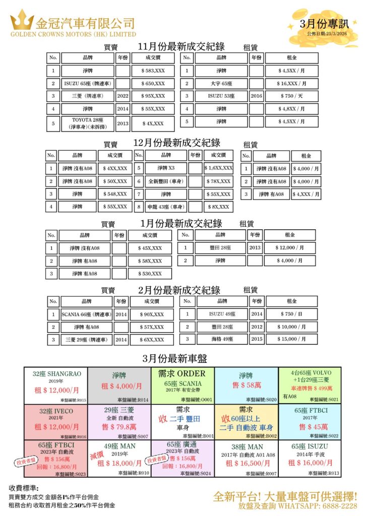 香港專營非專利巴士及牌照估價和買賣平台,管理過百台大小型旅遊巴士