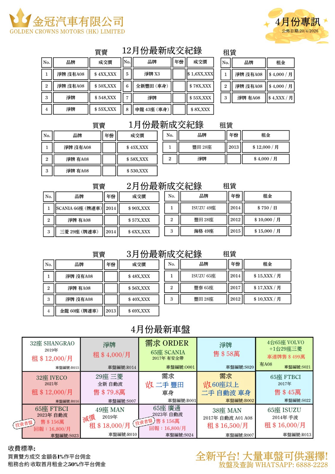 2020 – 2026年巴士牌價紀錄